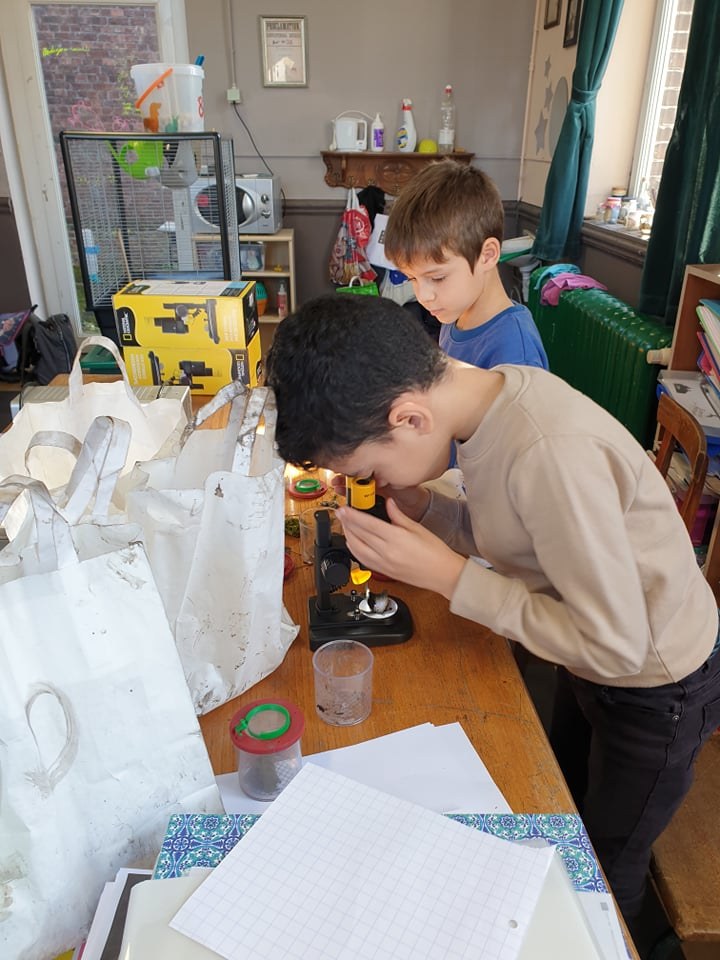 Demain, les enfants dessineront tous les détails d’un élément qu’ils ont collecté dans leur sac et qu’ils observeront au microscope. Puis ils écriront 5 phrases : au terril, j’ai… (cueilli, ramassé, entendu, vu, touché, senti, pleuré, râlé…).