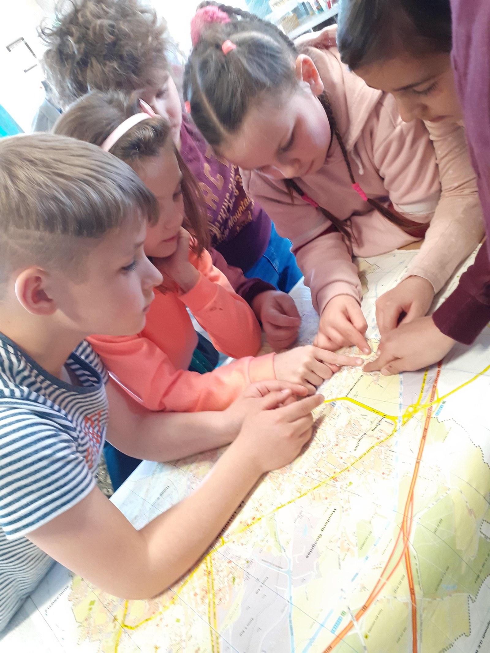 Ce matin, on a découvert en classe comment trouver son chemin : à l’aide d’un gps quand on part en voiture avec les parents (eh non, un gps, ce n’est pas de la magie : quand il nous montre le chemin, c’est grâce aux satellites ! ). « Dans la voiture de ma tante, il n’y a pas de gps, alors on prend une carte ! » Chaque groupe reçoit un type de carte différent : carte routière, carte topographique, plan de ville ; chacune a son utilité. On repère l’école : le plus facile est de trouver un indice qui peut nous aider. L’église en face de l’école, ce sera parfait : il suffit de chercher une croix ! Puis on trouve les « carrés de Bois-du-Luc ». Le dessus de la carte étant toujours au Nord, on tourne les cartes jusqu’à trouver la bonne orientation, puis on vérifie avec les boussoles !