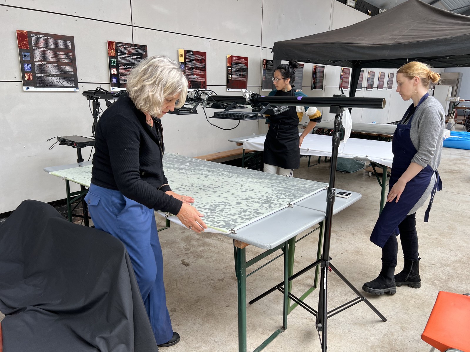 Guidée par Olivier Guyaux, l'œuvre sera sans doute l'un des plus grands cyanotypes composés au monde. Une installation mutée aux tanins bruns et noirs qui ne pouvait être conçue qu'au Bois-du-Luc puisqu'elle sera rehaussée de charbon et ne mobilisera que des produits naturels.